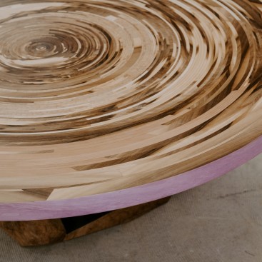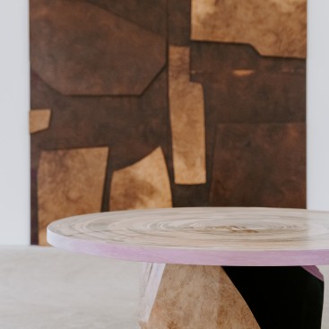 Her work explores themes of abstraction, craftsmanship, and time. Throughintricate inlaid designs, she expresses her artistic vision with bold graphics andrich color palettes, creating unique pieces of furniture and inlaid artworks. Hercreations reflect a poetic, animal-inspired language, which she signs under thename Farouche.
