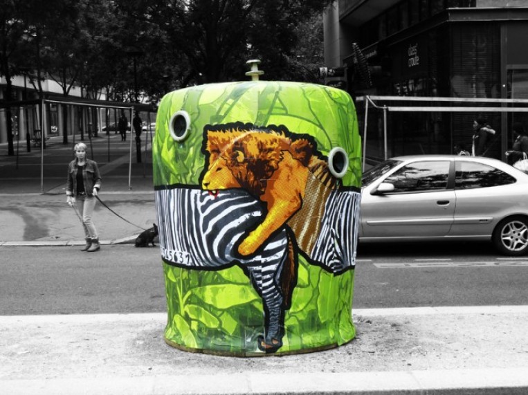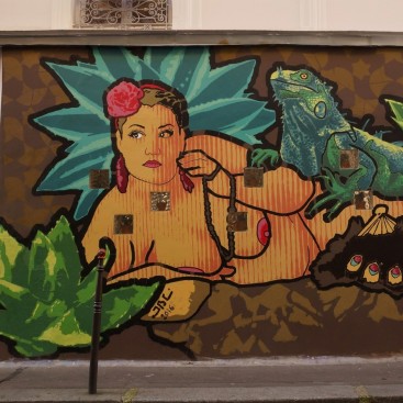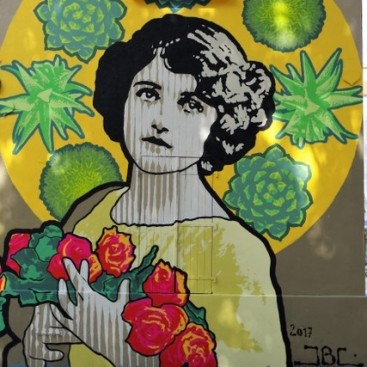 The choice of warm colors and botanical elements highlights the importance of the tropics in the artist's imagination, as a result of his many trips to Latin America. His mediums and materials are varied: walls, street furniture, canvases, objects of all kinds, and other installations. Since 2013, JBC has lived in Montreuil and has a studio at ICI in Montreuil.