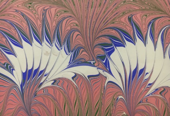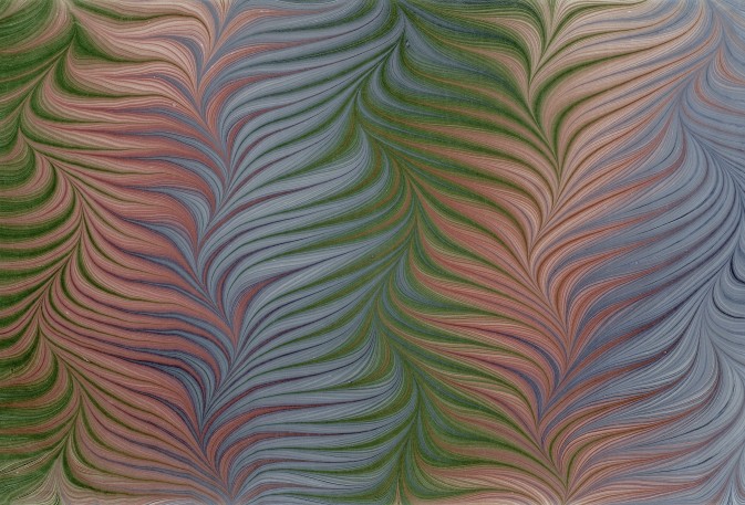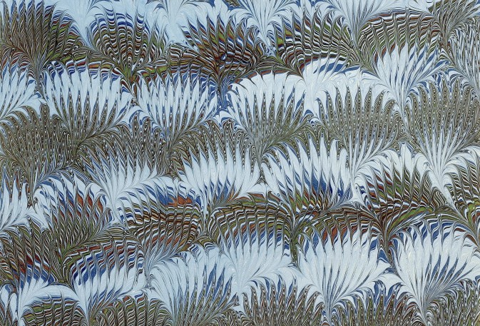 Cette exposition d’une quarantaine de pièces de Nicole Hillen aurait très bien pu s’intituler l’Art du Papier Marbré, car en dépit de ses protestations Nicole Hillen est bien une Artiste. Ses œuvres conçues sans pinceau ou crayon, relèvent d’une technique vieille de plusieurs siècles qu’elle découvrit lors d’un stage de reliure à l’école de la Haye aux Pays-Bas.