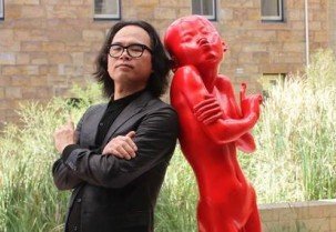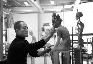 Le grand portail d’entrée s’ouvre sur une cour arborée dominée par ‘le nageur’ de Diadji Diop, la sculpture iconique de Gallifet.