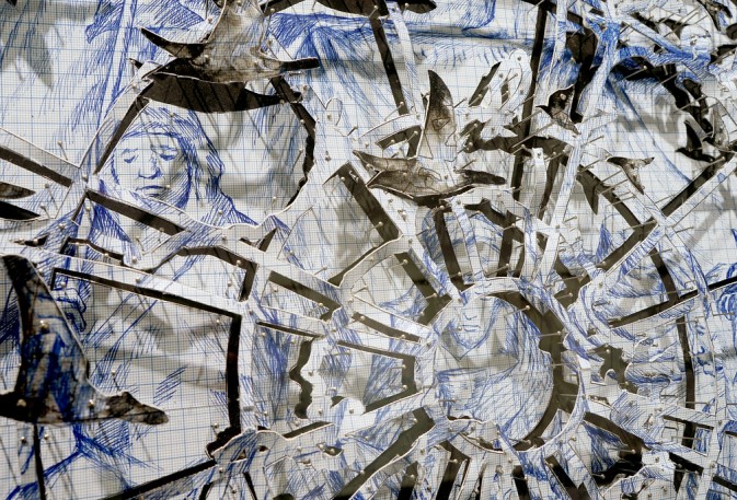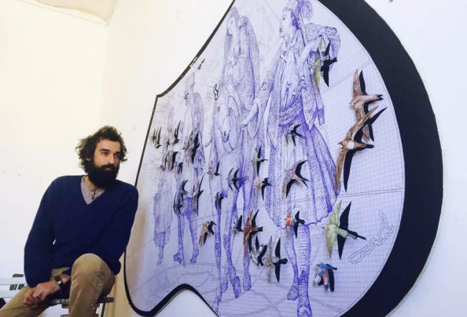 Pietro Ruffo est né en 1978, à Rome, où il a étudié l’architecture. Son travail analyse les thèmes principaux de l’histoire universelle, les classant par leurs niveaux sémantiques et linguistiques. Naissance et mort, passé et futur, ordre et chaos, stabilité et transformation, tout fait partie d’une vision circulaire de l’univers, réduit à la chimie des éléments, mettant en évidence la diversité et la complexité du genre humain. Dans cette analyse, Pietro Ruffo utilise différentes techniques, conçues comme de véritables outils de recherche, qui « scannent » la réalité afin de synthétiser et d’établir les connections et les chemins de la pensée. Dans la plus pure tradition italienne, il est capable de passer avec une grande liberté, du dessin, à de grandes installations et à la vidéo, ce qui lui permet de se pencher avec précision sur tous les aspects de l’univers, qui ne sont pas immédiatement visibles.