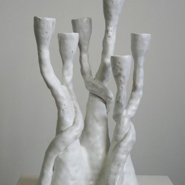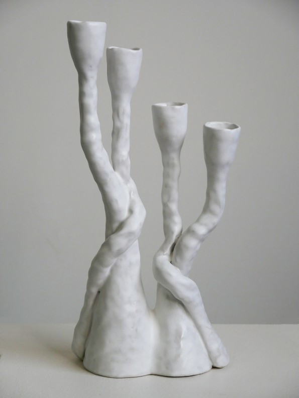 Née dans le Cotentin d’où elle garde un goût prononcé pour la nature, Claire Cosnefroy entame son parcours artistique à l’Atelier de Sèvres puis à l’ESAA Duperré à Paris et navigue ensuite entre mode et musique : son chemin s’établit dès lors comme une passerelle permanente entre plusieurs mondes. La rencontre il y a quelques années avec la terre lui apporte la possibilité d’une réconciliation. Après une formation en Bourgogne à Saint Amand en Puisaye, elle s’engage pleinement dans cette voie et développe un langage singulier en façonnant des pièces sculpturales en grès et porcelaine au colombin. Sa pratique s’articule autour de la recherche d’un geste instinctif dans une rapidité d’exécution, afin de favoriser une mise en forme spontanée de