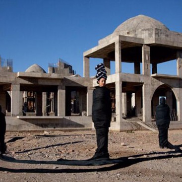 Son statut d’artiste l’autorise implicitement à endosser ce rôle de guérisseuse et à prendre les formes nécessaires à ce renouveau. Elle devient le miroir régénérant du monde de ces animaux sacrifiés, l’architecte de temples à reconstruire, ouverts aux vents, entre les mondes musulmans, les grandes réalisations anciennes, les yourtes traditionnelles et les rubans de couleurs qui rappellent dans leurs volutes les anciennes routes de la soie. Elle recrée la cohésion de ces peuples nomades et montre le chemin tissé d’un futur possible.