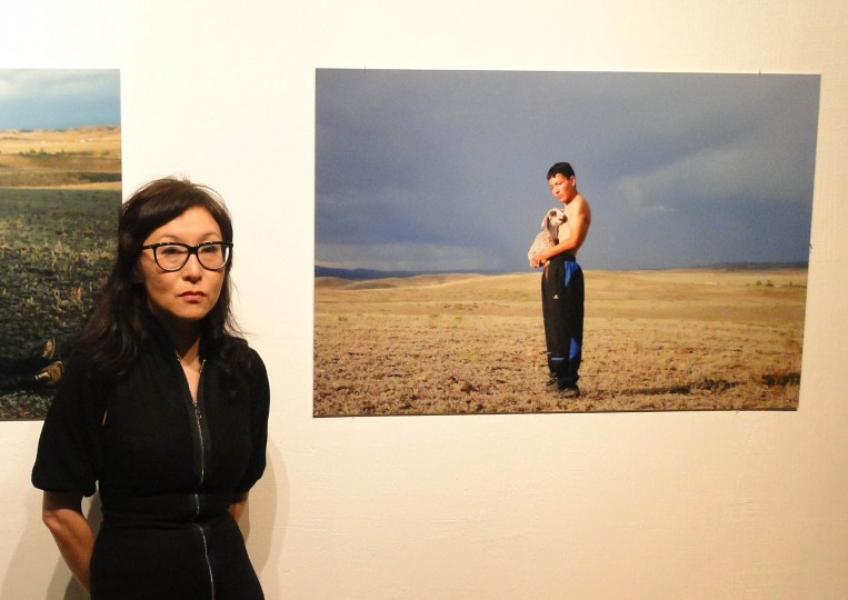 Originaire du Kazakhstan, cette jeune femme vit et travaille entre Berlin et Almaty. Son esthétique, où se mêlent photographies et vidéos, se réclame d’une forme nomade post-soviet, celle du Kazakhstan contemporain, après sa formation initiale à l’école du futurisme de l’avant-garde soviétique. Elle explore dans ce qu’elle appelle «son atavisme archaïque», dans un anthropomorphisme quasi-mystique, l’inconscient collectif de populations des steppes d’Asie Centrale entre la mer caspienne Baïkonour et l’Altaï.